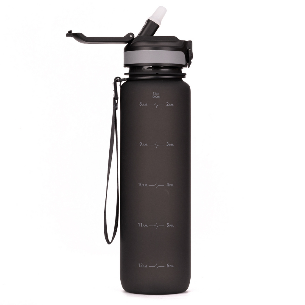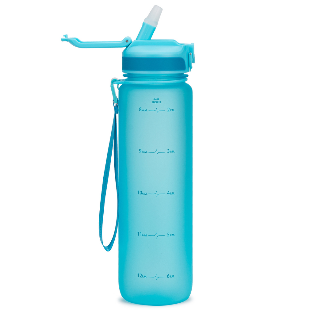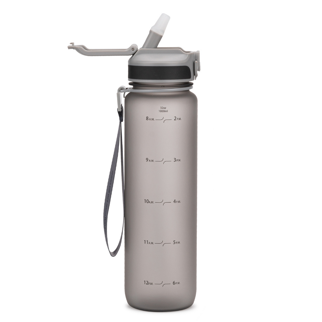 1 L Sportflasche mit Zeitmarkierung und Trinkhalm