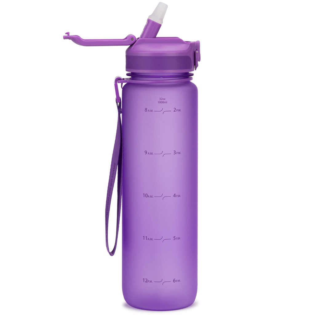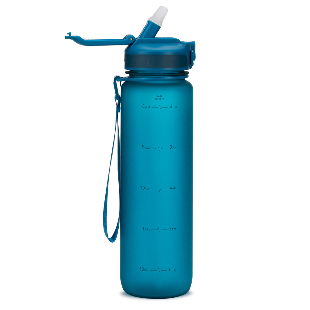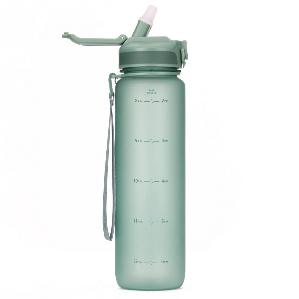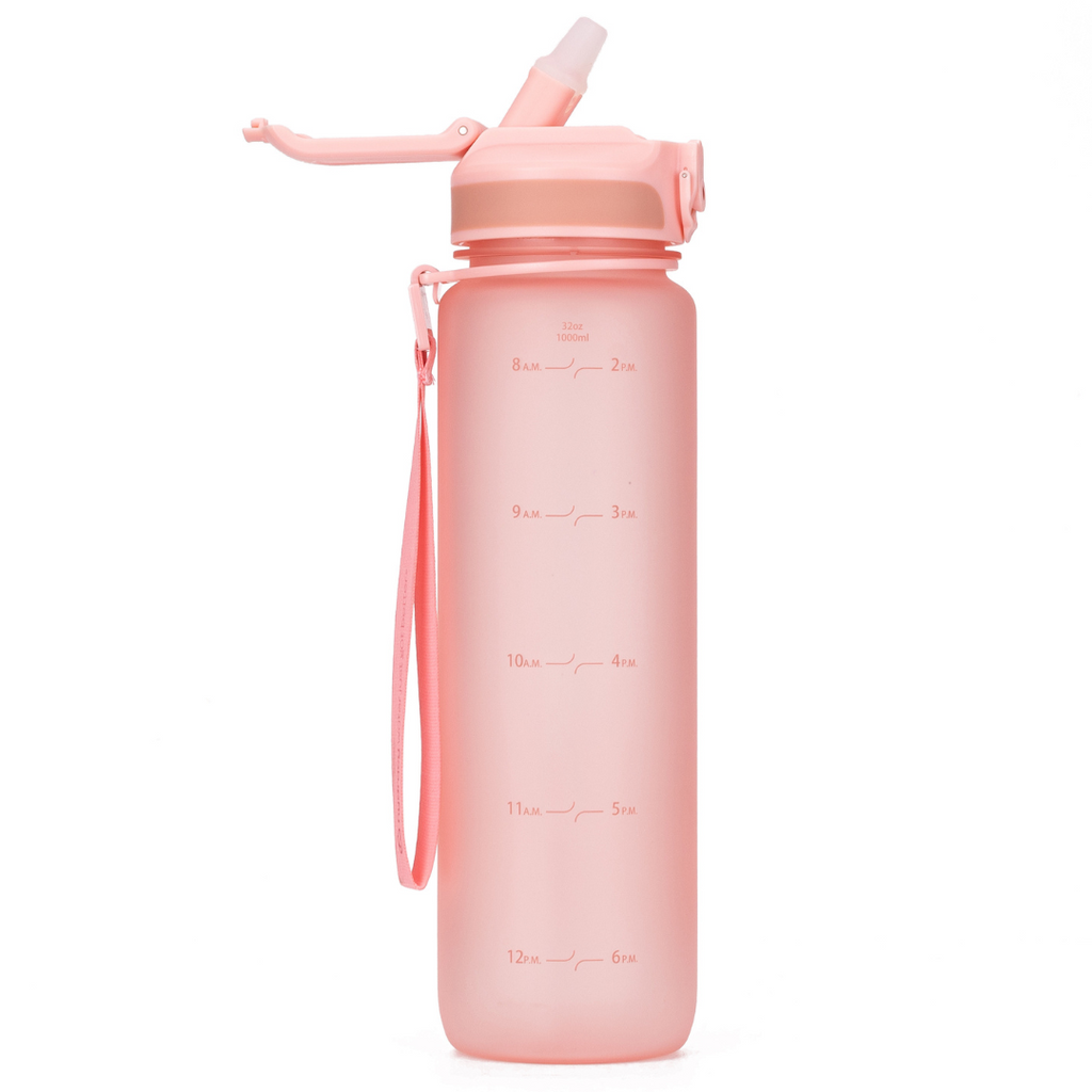 1 L Sportflasche mit Zeitmarkierung und Trinkhalm